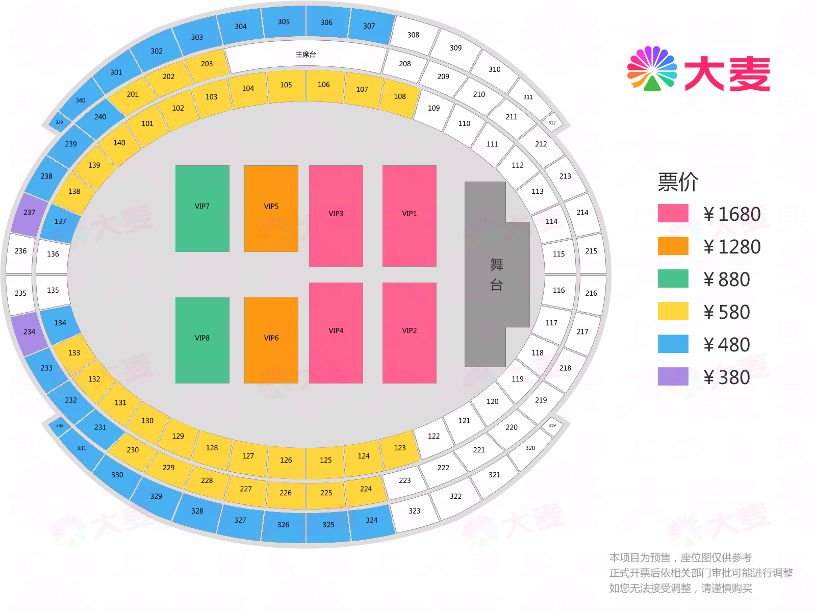 票价:看台380元、看台480元、看台580元、看台880元、内场1280元、内场1680元